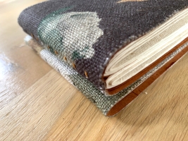 We leggen in deze sessie de nadruk op de uitvoering van de cover. Een mooi lapje stof zal voorzien worden van een aangepast handgeschept papier (cacheren) zodat deze voldoende stevig wordt om als soft cover te fungeren. De invulling van het boek bestaat uit 2 opdikkende katernen die met een eenvoudig naaipatroon in de softcover worden genaaid. De cursist kan zelf de grondstoffen van haar/zijn boek meebrengen of deze aankopen in het atelier. De nodige informatie hier aangaande wordt tijdig bezorgd. Alle andere materialen worden voorzien. Geen voorkennis vereist.