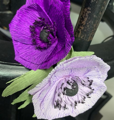 Het mooie Italiaanse crêpepapier speelt een hoofdrol in deze workshop. We maken kennis met een paar technieken die aan de basis liggen van de opbouw van een crêpepapieren bloem. Je snijdt volgens aangeleverde sjablonen de stampers/bloemblaadjes/groene blaadjes. Je ervaart wat de stretchbaarheid van het papier is, en leert de verschillende onderdelen opbouwen tot een bloeiende anemoon.