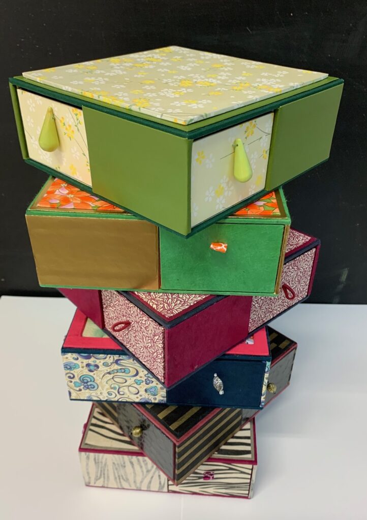 We bouwen verder op de beginnerscursus en verdiepen ons in de boeiende wereld van kartonnage. Tijdens deze 3 lessenreeks maak je 2 werkstukken: een fotodoos met magneetsluiting, en een vier schuiven doos. Om deel te nemen moet je de beginnersreeks hebben gevolgd.